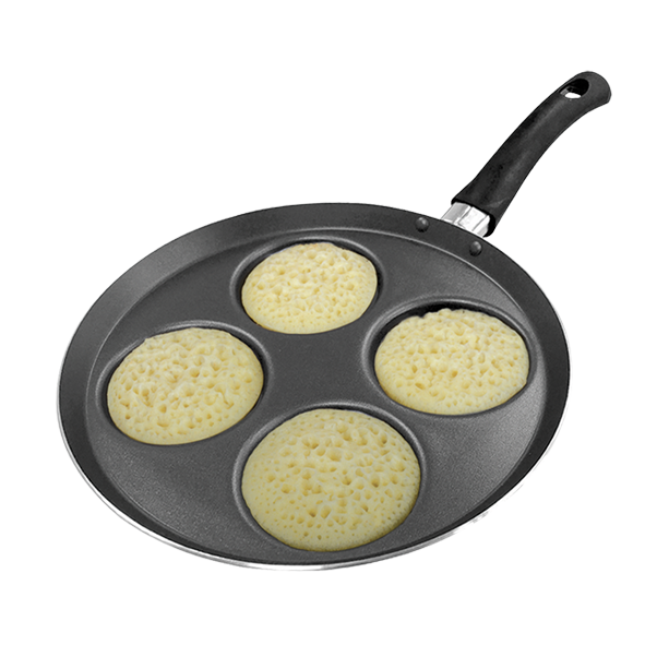 Cette poêle dédiée à la cuisson réussie de petits formats (mini‑crêpes, baghrirs, pancakes) offre 4 empreintes circulaires de Ø 8 cm chacune, et un diamètre total de 24 cm. Son revêtement anti‑adhérent sans PFOA permet une cuisson saine sans ajout de matière grasse. Ergonomique, elle dispose d’un manche bakélite antidérapant et résistant à la chaleur, et assure une excellente diffusion de la chaleur. Adaptée à tous feux sauf induction. Disponible en coloris vert émeraude. Garantie 3 ans.
